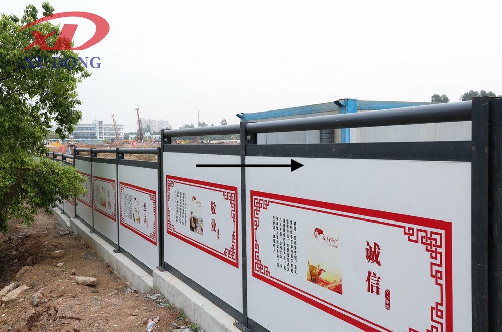 旭東公司的產品有裝配式烤漆施工圍擋A款、鋼結構工地圍擋C款、PVC圍擋、輕鋼圍擋等產品,該產品主要應用于房地產、市政、交通等工程施工現場,是城市安全建設的一道美麗屏障。使用完之后,保存完善,是可以重復使用的!