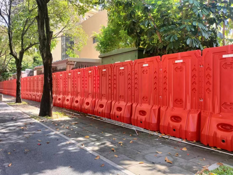 注水圍擋:注水圍擋是一種可調節高度的圍擋產品。它采用高密度聚乙烯材料制作,內部可以注入水或沙子來增加重量,提高圍擋的穩定性。注水圍擋的特點是便捷易攜帶,可根據需要進行組合和調整,適用于各類臨時場所的隔離和保護。