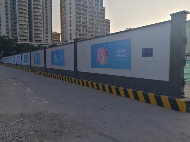 深圳旭東鋼構技術開發有限公司鋼結構A款圍擋產品是深圳工程項目首選的工地施工圍擋,鋼結構圍擋A款面板以彩涂鋼板(工廠整卷流水烤漆)為原料,使用專用設備冷軋折彎一體成型為扣板結構,扣板折邊代替鋼結構圍擋A1款面板的龍骨,并且明柱采用卡槽形式、暗柱(100*100方通)采用掛靠形式安裝,進一步降低了材料和安裝成本,使之存儲節約空間、方便運輸、安裝更為便捷,價格經濟實惠。