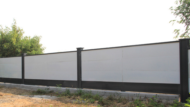鋼結構A款圍擋表面是經過烤漆處理,上面三塊圍擋板表面為乳白色,底部深灰色,這樣的設計能夠讓一些靠近主路或車流量相對大的路段鍍鋅扣板在陽光照射時易反光,容易讓過往行人及車輛駕駛人員刺眼眩目,造成不安全因素。為避免此類情況和提高美觀度,特改用彩涂扣板材料。
