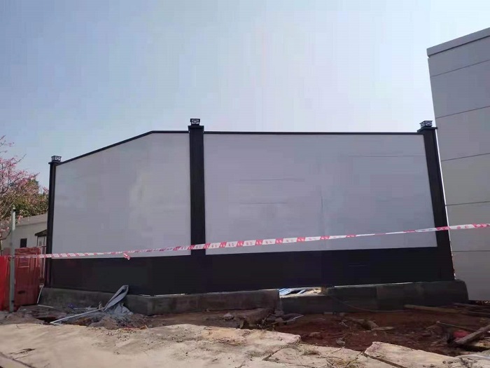 以下是該工程項目所需的鋼結構A款烤漆圍擋的安裝效果圖,在我們團隊高效的裝車發貨下,很快我們就達到了指定地點,然后快速進行卸貨安裝,效果圖如下: