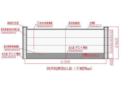 鋼結構圍擋A1款,是根據深圳市住建局標準要求設計制作,一般情況應用于半年(6個月)以上的工程。采用框架式結構,且每塊面板都有兩條橫向方通龍骨,兩側用自制角鐵做豎向龍骨,標準化拼裝。圍擋全部采用金屬材料,表面噴涂烤漆處理,經久耐用、不易褪色、耐腐蝕,可循環使用5年左右,降低成本。
